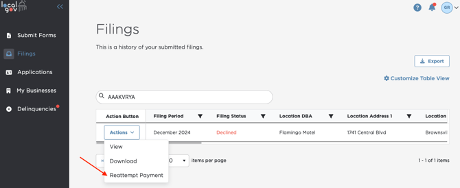 - Go to Actions and select Re-attempt Payment to open the form.